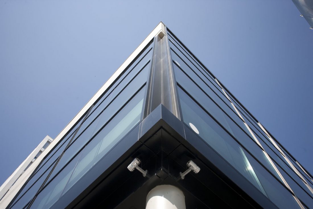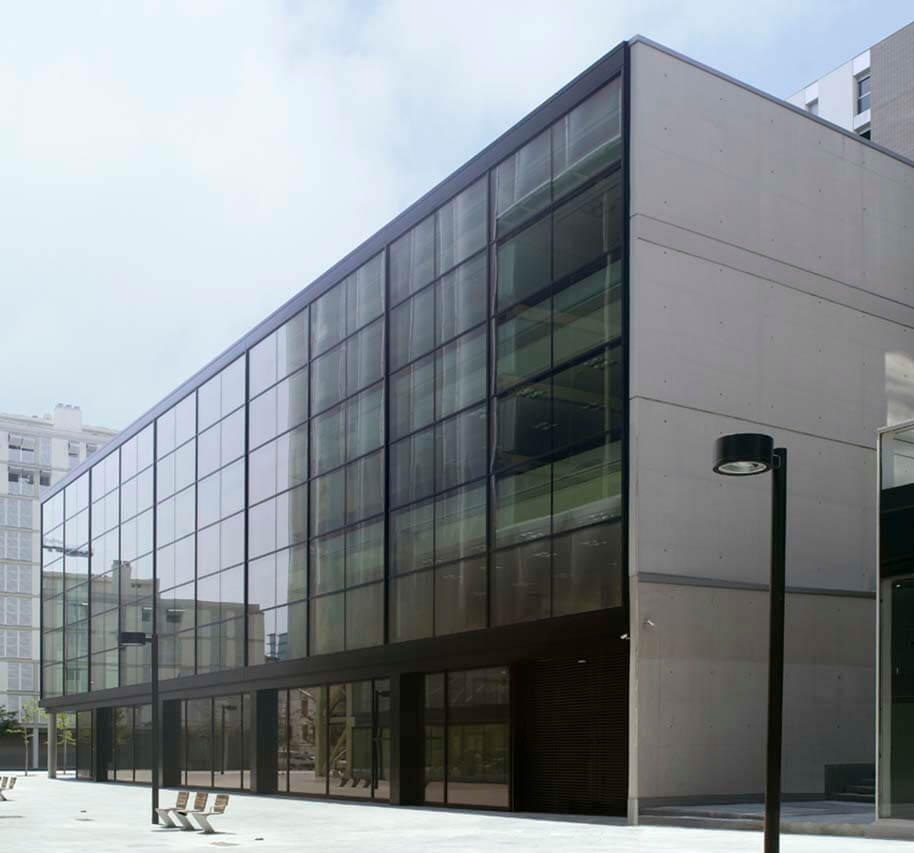 Fachada exterior con sistema de muro cortina de acero Viss TVS y carpintería Janisol de Jansen