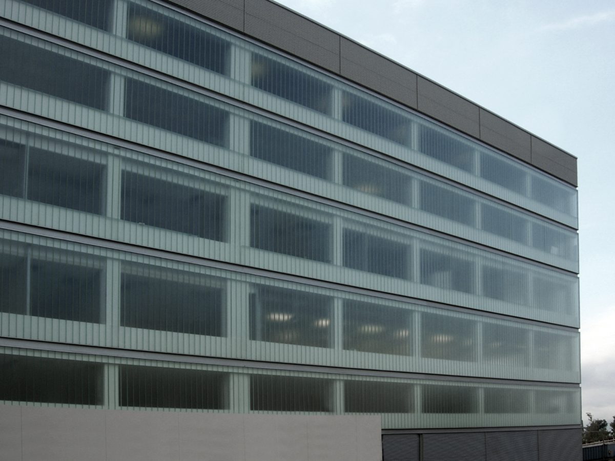 Façana de l'edifici amb finestres semitransparents